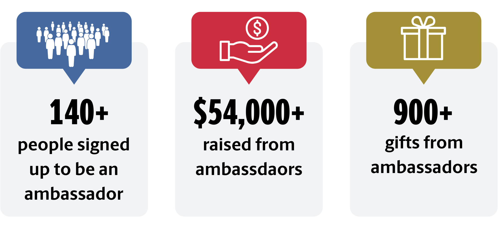 Last year 150+ ambassadors came together and raised more than $54,000 from 900+ gifts to support the areas they care about the most.